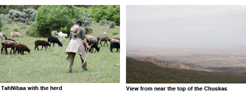 Since the fall of 2004, when I first met TahNibaa Naataanii and learned about the annual pilgrimage she makes to herd her sheep up to the summer grazing lands high atop the Chuska Mountains, I’ve wondered if I’d ever get the chance to accompany her on the journey. When I spoke with TahNibaa in late May and learned that the date for this year’s trip was set for June 2, our editor Gloria LaMorte and I jumped at the chance to head out to the reservation and film the event. At the time, we were knee deep in editing. It was becoming clear to us in the process that there were several small pieces of this important story that we had yet to capture on film. Within a couple of days Gloria had developed our shot list while I booked our flights and contacted 4 of the 5 families featured in Woven Ways. We quickly solidified plans for what would be our final filming trip. One of our goals for this trip was to capture footage that could visually represent TahNibaa’s dedication to her herd, and the vital role the sheep play in her culture and livelihood as a weaver. The trip up the Chuskas felt like the perfect setting. Somehow, over the course of the past 2 1/2 years, I had romanticized the trip as a beautiful cultural event (which it is), rather than a grueling 10 mile vertical climb!