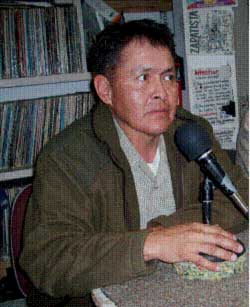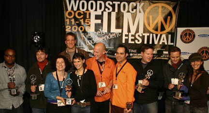 Saturday night Woodstock Film Festival Awards (L to R): Moon Molson (Pop Foul - Best Student Short), Kirby Hammond (Universal Movement Machine - Best Short Doc), Julian Loktev and Lisa WIlliams (Day Night Day Night - Best Narrative Feature), Nick Childs (The Shovel - Best Short), Artie Wilinski and Vinnie Angel (The Orange Thief - Best Editing for Feature Narrative), John Mounier (Beyond Eyruv - Best Doc), Gabriel Noble and Paola Mendoza (Autumn's Eyes - Best Editing for Feature Doc). Photo credit: Martin Gardlin JULY 2006 WOVEN WAYS WORK-IN-PROGRESS RECEIVES A film can’t effect change if it isn’t seen. Ensuring that important films are seen by a broad audience is the job of distribution companies. After screening a copy of the Woven Ways work-in-progress Michelle Materre, Director of Distribution for Third World Newsreel (TWN), responded by writing, “The work-in-progress version that we screened was indeed impressive. In fact, I didn’t realize it wasn’t a complete version until I re-read your letter! I think your film does an excellent job of documenting the plight of uranium mining and dirty coal power and its impact on the Navajo community.” Michelle goes on to say, “TWN looks forward to screening the completed work, and would definitely be interested in adding it to our growing collection of films and videos about Native peoples.” The NYC-based company is one of the most highly respected distributors of social justice documentary films. We look forward with great anticipation to meeting with Michelle when we’ve finished the film to discuss a future relationship with this giant in the documentary distribution arena. APRIL 2006 WOVEN WAYS RECEIVES PUFFIN FOUNDATION GRANT Grants from charitable foundations are very important for this film project. We have just received our third grant, this time from the Puffin Foundation. The grant will be used to cover expenses of the next filming trip to the Navajo Reservation this summer. NEW 30 MINUTE 'WORK IN PROGRESS' DVD COMPLETED Award-winning documentary editor Dena Seidel has many gifts as a film professional. One of the most extraordinary talents is for finding the storyline from dozens of hours of raw footage. She recently completed editing a 30 minute ‘work-in-progress’ piece that we can use for fund raising to introduce our feature characters and to provide background information about some of the serious issues they face every day on the Navajo Reservation. We’ve been screening the DVD at churches, community meetings, and in the homes of supporters. If you would like to host a screening and fund raising event in your home please contact us right away! NEXT FILMING EXPEDITION PLANNED FOR JUNE Our small and dedicated crew heads back to the Navajo Reservation in June. Filming locations include a return visit to the Crownpoint Rug Auction. We hope to follow Felisha House, a young weaver from the area who plans one day to sell her own rugs. If the proposed uranium mining project moves ahead, Felisha and her family could be left without any clean drinking water, as geologists predict that the mining process will contaminate the aquifer that surrounds the uranium deposits. After a year of planning, we’re anxious to make the pilgrimage to the Chuska Mountains with TahNibaa Naataanii and her Churro sheep herd. The trip will provide a great vantage point from which to film the ever-present floating plume of highly toxic pollution that drifts southward from two dirty coal power plants in the region. Lastly, we are hoping to arrange an interview with Navajo Nation President Joe Shirley. Mr. Shirley has recently signed a ban on all new uranium mining efforts on the Reservation. Unfortunately, the legislation has not halted plans by the mining companies and the US government to extract the uranium. The Navajo president has stated publicly that any challenge to the new ban would constitute a breach of the tribe’s sovereignty. This urgent issue helps fuel us to complete our film as soon as possible, so that we can share this story with the American people. PRODUCER'S JOURNAL NOTES - SUMMER 2005 Generous donor support and a last minute grant from a wonderful family foundation made it possible for Director of Photography Samuel (Sam) Goodman, Sound Recordist Saul Rodgar, and I to resume filming on the Navajo Reservation in July. It was exciting to meet so many of our production goals for the shoot, and troubling to witness the devastating affects of coal and uranium mining everywhere we traveled. Filming took place at four locations, Navajo Nation Tribal Council in Window Rock, Arizona; the monthly Crownpoint Rug Auction held in the elementary school gymnasium; the Harvey/Tsosie home in Cortez, Colorado; and Borrego Pass, home of the extended House/Day/Tolth family. continued FIRST GRANT RECEIVED FROM LEF FOUNDATION, Woven Ways has received its first major grant from the LEF Foundation. The funds will be applied to the cost of equipment, travel, and production staff for filming that will resume on the Navajo Reservation in July. NAVAJO PRESIDENT JOE SHIRLEY SIGNS HISTORIC WOVEN WAYS HAS BEEN AWARDED FISCAL SPONSORSHIP by the International Center for Global Communications, Inc. (d.b.a. The Global Center). The Global Center’s mission is to promote and foster public awareness of the peoples, cultures and current affairs of nations throughout the world, and to encourage peace and understanding through various forms of media and other methods of information exchange. What is fiscal sponsorship? Fiscal sponsorship is an important fund raising tool for documentary films. Fiscal sponsorship means that a registered non-profit organization (501©3), in this case, The Global Center, agrees to become the “fiscal agent” for the film project. The Global Center charges a 5% administrative fee for this service, which is the smallest amount charged by any of the fiscal agents we researched. Why is having a fiscal sponsor so important? Wov